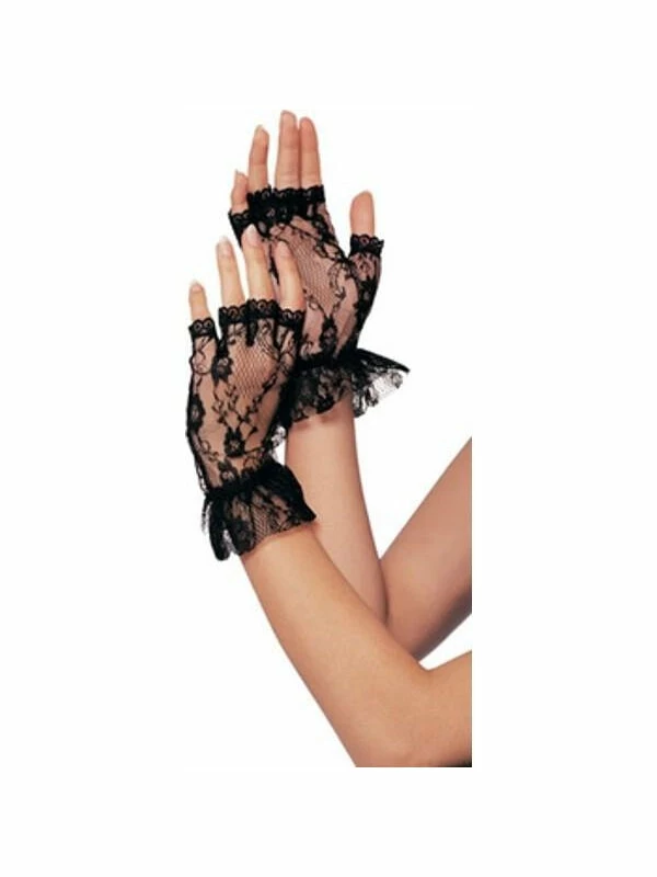 Black fingerless lace gloves.