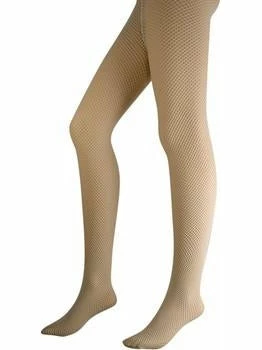 White nylon fishnet pantyhose. One size fits most adults.