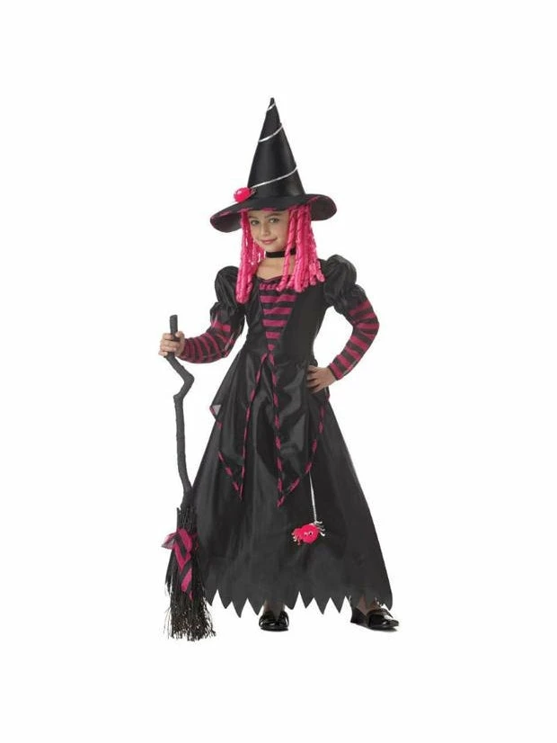Our kid’s witch dress is a cute girl’s costume for any Halloween event. To complete this child’s witch outfit consider adding a witch broom.
