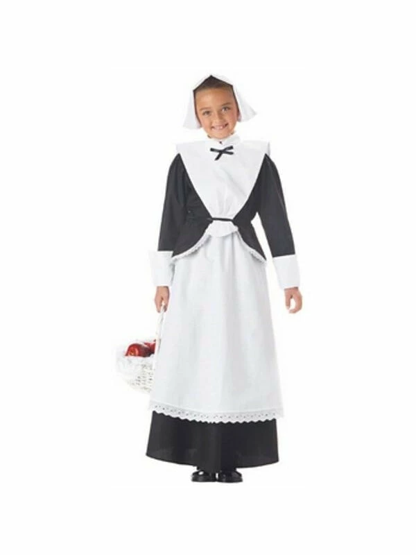 Our girl’s pilgrim outfit is the ideal child’s Thanksgiving costume. This early American costume is ideal for school plays and productions.