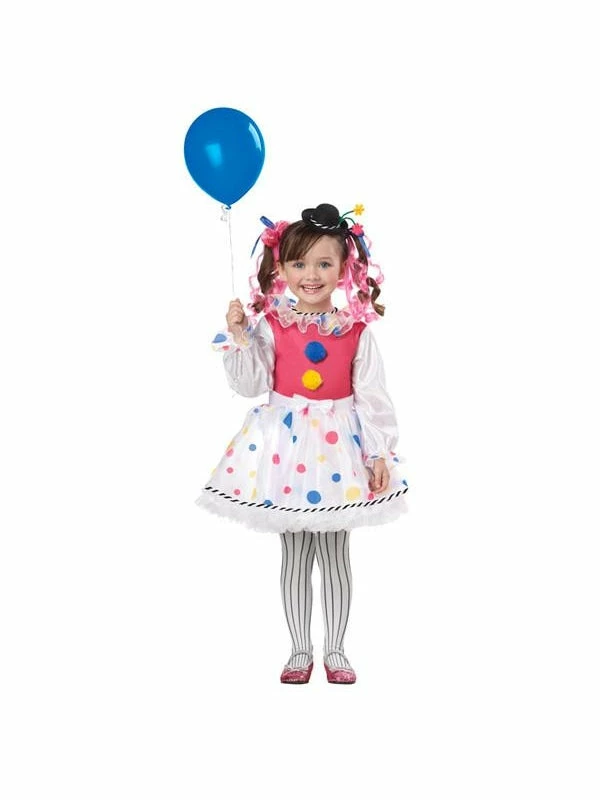 This child clown costume is too cute for words. The classy dress remembers a classic look with modest features appropriate for a child’s costume.