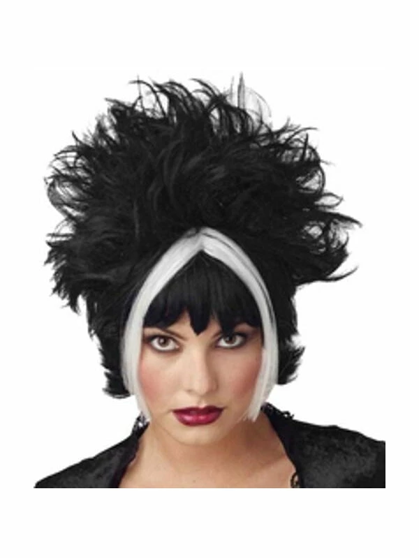 Adult Chunky Black & White Gothic Streaked Costume Wig