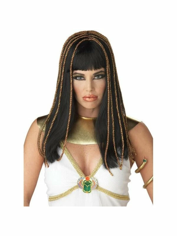 Our black Cleopatra wig with decorative trim is a great addition for any Egyptian princess costume.