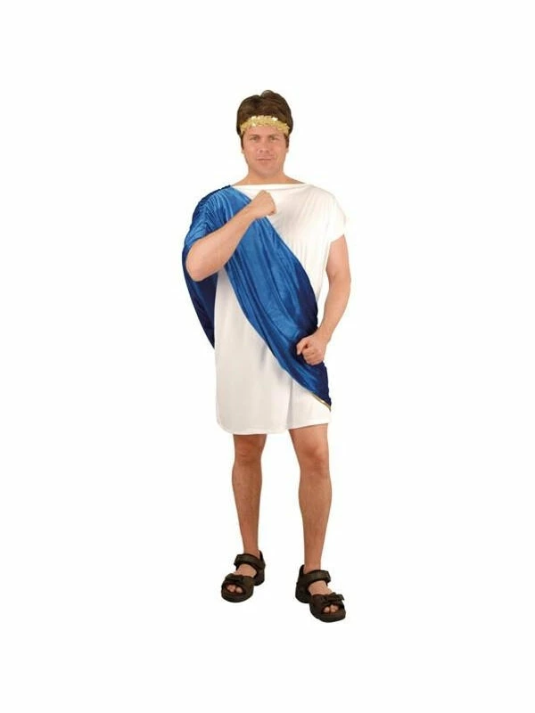 Our Greek toga man outfit is a great quality theater costume. Finish the look with our adult Roman sandals.