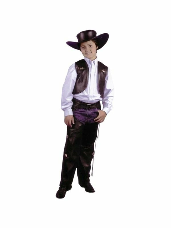 Our child’s cowboy leather chaps and vest outfit is the most popular child’s cowboy costume found on the web. Add a cowboy hat and boots to complete the look.