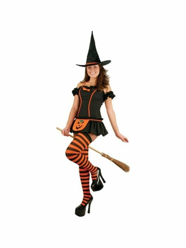 Our teen pumpkin witch dress is the perfect sexy Halloween costume for any teenage girl. To complete this fashionable witch costume do not forget to purchase a broom stick.