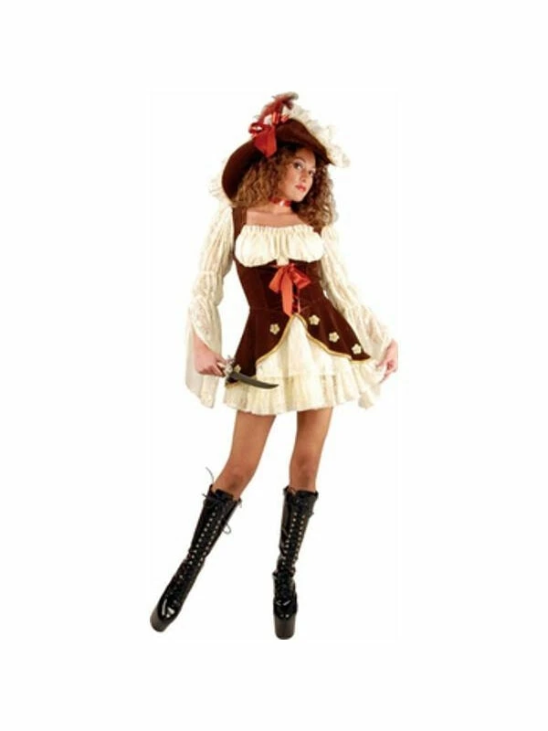 Our teen girl’s pirate dress is cute enough for teen girls and yet modest enough for their parents. To complete this pirate look do not forget to add your pirate hat and pirate props.