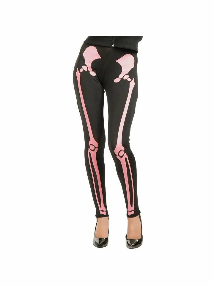 Turn your skeleton hoodie into a full outfit with these pink skeleton leggings.