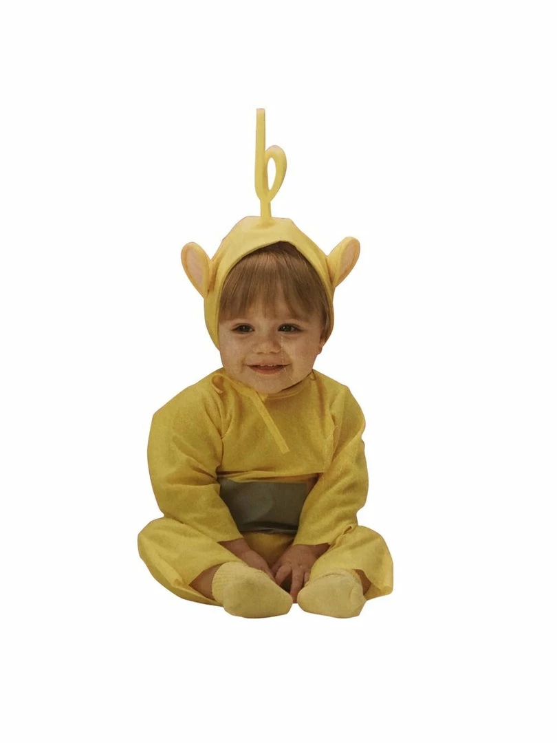 The original Teletubbies costume! Our baby Laa-Laa costume features soft, yellow jumpsuit with a two-piece hat that requires light assembly. This is the original licensed costume from the 1990’s.