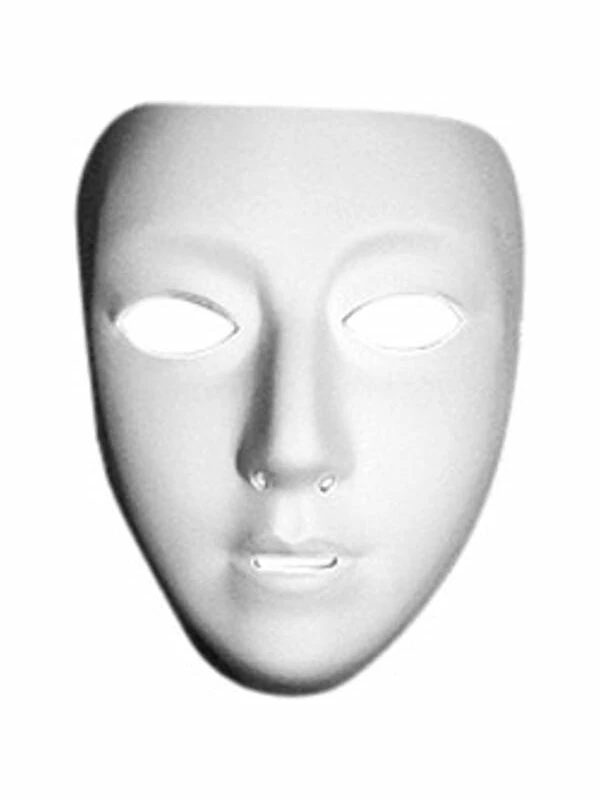 Our Jabbawockeez mask is a blank white rigid plastic drama face mask.