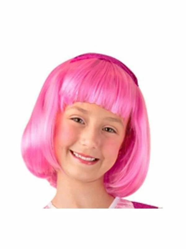 Our pink bob wig is hot pink with attached headband.