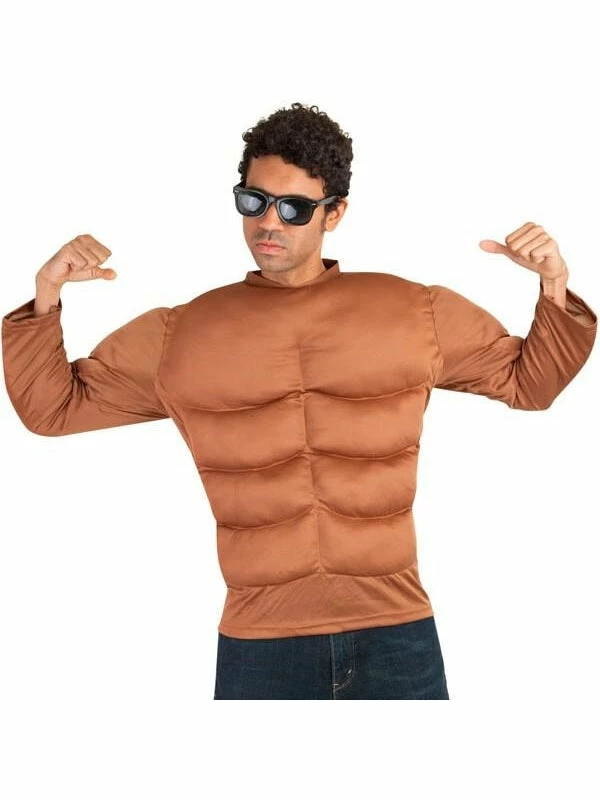Bulk up without the workout in this muscle chest top. Perfect for silly costumes. Also makes a great body builder outfit.