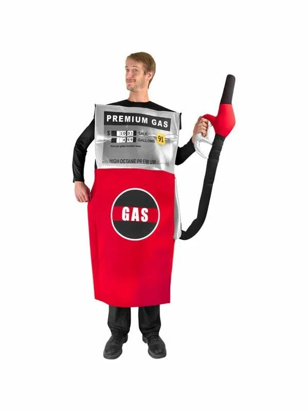 Like so many things we use today, the gasoline pump was first invented late in the 19th century. Back then only kerosene was being pumped out of the fuel dispensers but with the invention of the automobile and many ensuing decades we now have the modern gas pump. Our fuel pump costume features a boxy, tunic style costume with attached “nozzle” that can be held in one had.