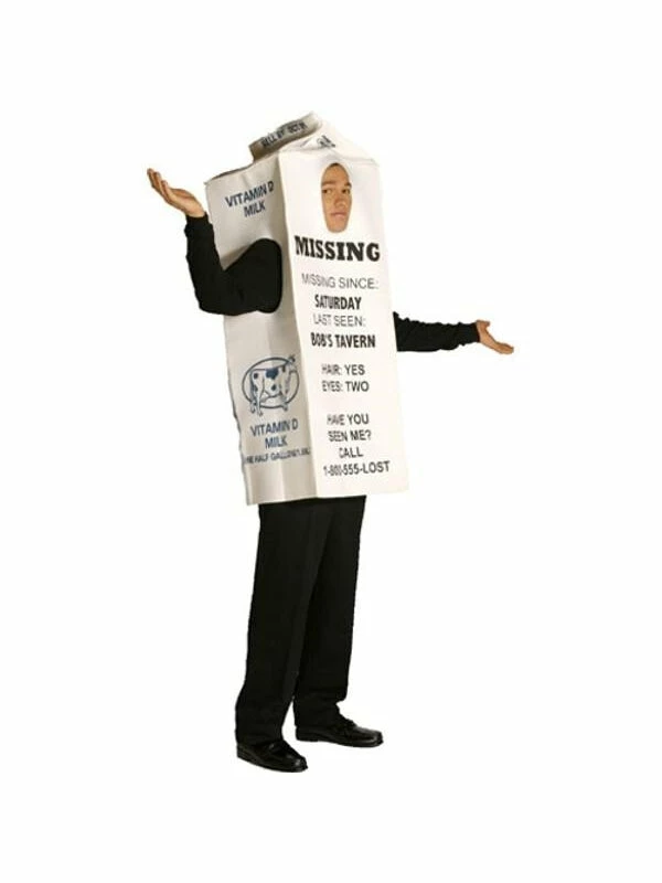 Our adult milk carton outfit is an easy costume idea, just slip it on and you’re ready to go.