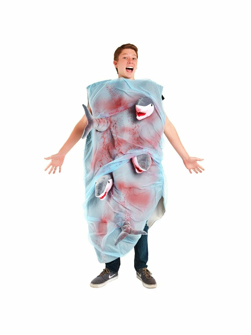 When the forces of nature combine to the downfall of mankind shark-infested-tornadoes are the deadly result. With its printed foam and hilarious concept our tornado shark costume is unique, fun and sure to turn heads at the Halloween party.