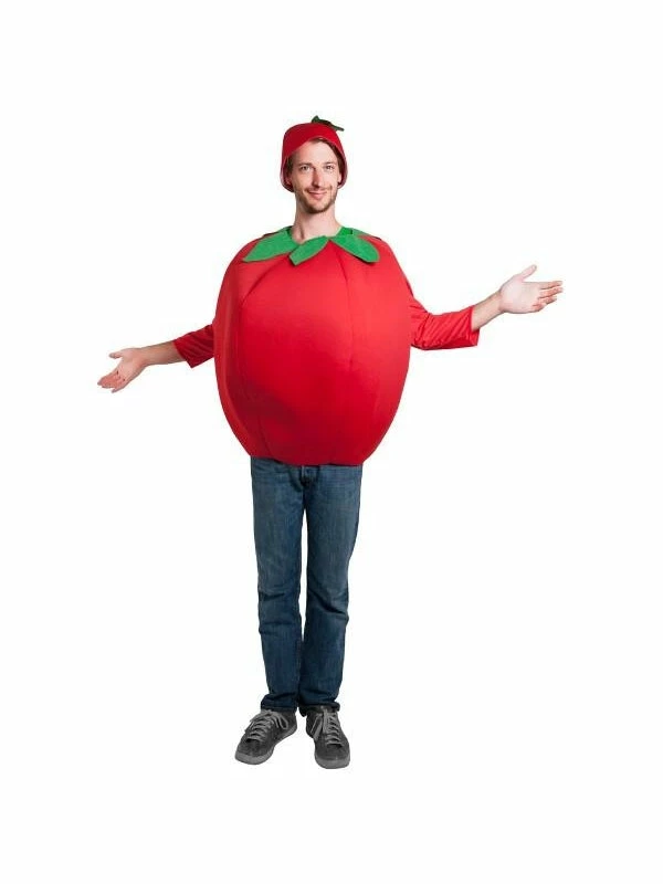 Our Tomato costume features a red foam body piece with green leaves, and a matching tomato head cap. For a fun group idea try, any of our other Food Costumes.
