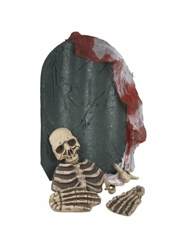 - Bones and bloody gauze pop out of the tombstone to spread on the ground
