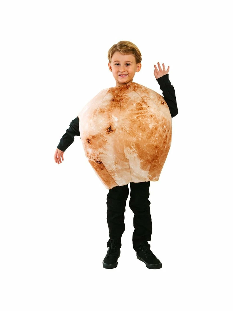 This amazing costume balloons to become a fully 3D globe with screen printed Venus pattern for a realistic-looking planet costume.