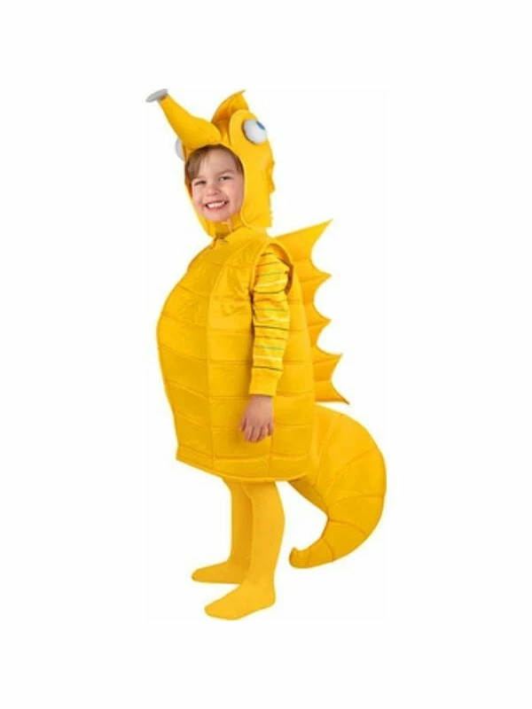 Your toddler will look cute as a button and happy to boot in this toddler sea horse costume. Features bright yellow fabric for a happy aura.