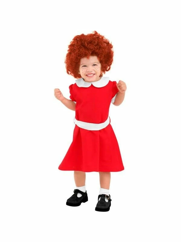 Tomorrow is only a day a way with our toddler Orphan Annie costume. This costume comes with a red dress with sewn on white belt. To really complete this costume add the Annie wig.