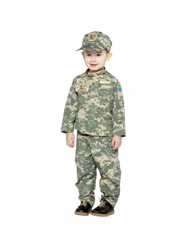 Our kid’s toddler Army uniform outfit is features a modern, realistic design. The desert camouflage pattern is in keeping with modern US military conventions and works perfectly for your little soldier.