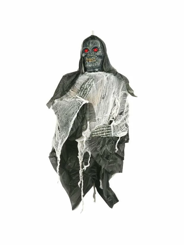 Terrify and bemuse would-be Trick or Treaters with this horrific hanging skull prop!