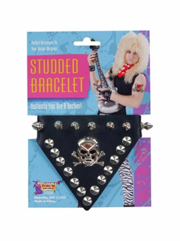 This skull and studded bracelet is a great addition to any 80’s rocker costume. You’re sure to look like a heavy metal guitarist with this cool skull and studs bracelet.