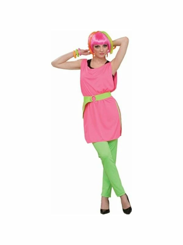 Have a blast this year with a hot pink 80’s tunic straight from a 80’s video. You’ll look hip and great this year wearing a fun pink 80’s tunic dress. Get your friends to go in a group this year and see our other great 80’s costumes.
