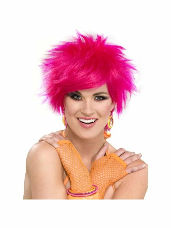 Show your wild side with this hot pink 80s wig. Our neon pink 80s wig is perfect for any punk or mod costume. Find more great 80s wear in our 80s accessories section.