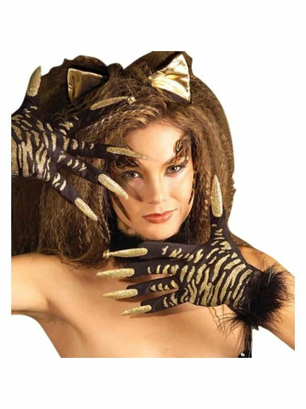 Our adult tiger gloves with nails are the perfect addition for any Halloween costume.