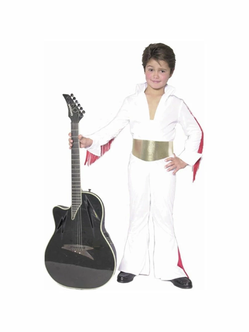 Our kid’s Rock Star costume features a jumpsuit trimmed with fringe & gold belt. Be a hound dog with this child’s Elvis inspired Halloween costume.