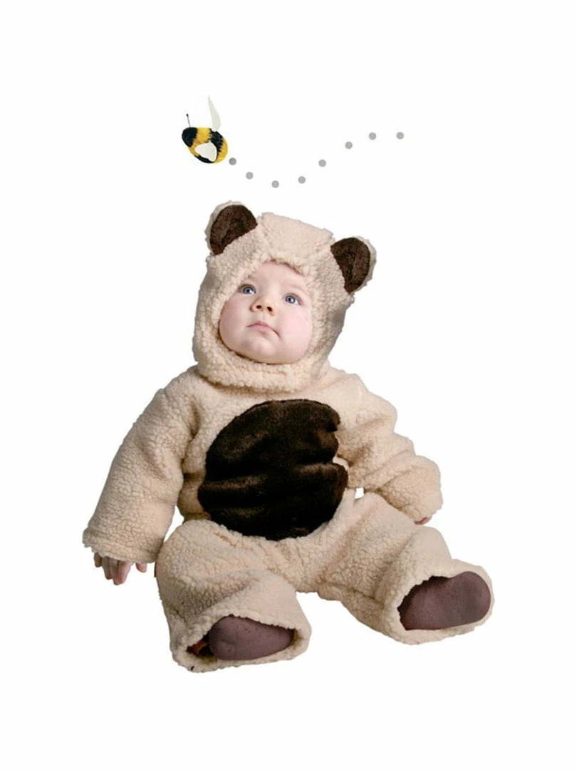 Our Infant Oatmeal Bear costume is a plush jumpsuit with fur tummy & ears. Brown socks not included. Manufacturer’s details may vary from photograph.