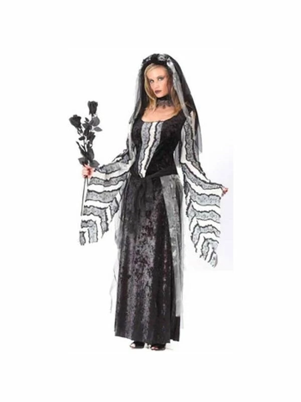 Our ladies black rose ghost dress is a nice gothic bride costume for Halloween. This dark women’s dress makes a great ladies Halloween costume and it will go great at any adult Halloween costume party.