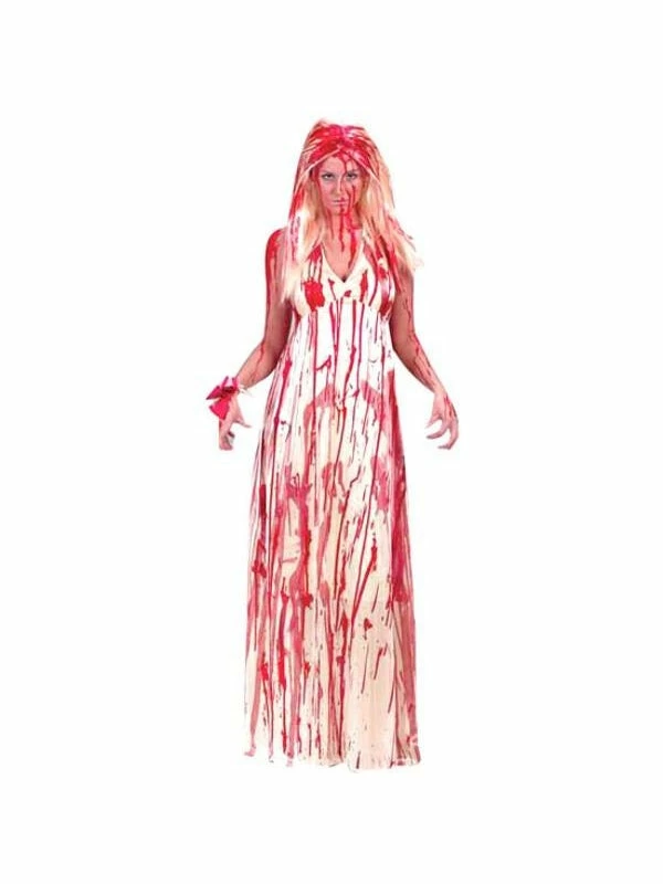 Adult Bloody Prom Dress Costume. Look just like Carrie covered in pig’s blood in a prom night gone wrong.