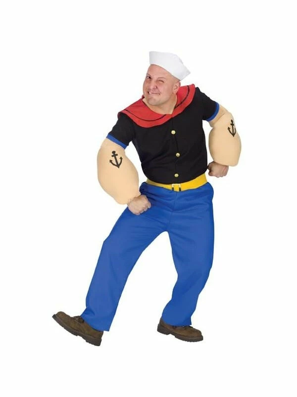 Our Adult Popeye Costume is the ideal Cartoon Character Costume for adults. For a fun Couples Costume idea consider all our Popeye Costumes with Olive Oyl and Brutus.