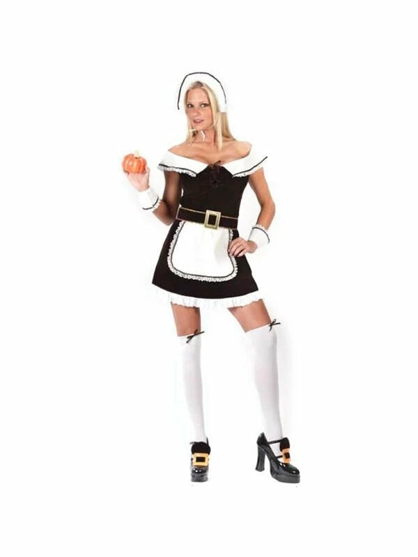 Our ladies sexy pilgrim dress is a nice costume for Thanksgiving or as an unique women’s sexy Halloween costume.