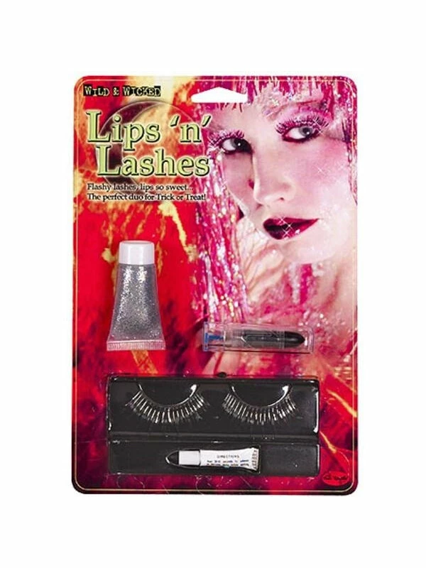 Silver halloween lipstick eyelash Make Up kit. Flashy lashes with lips so sweet, the perfect duo for trick or treat.
