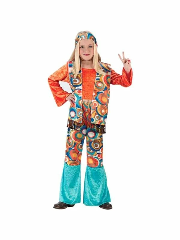 Our kid’s hippie girl outfit is a classic 60s costume idea. This peace loving children’s hippie costume makes a great kid’s Halloween costume.