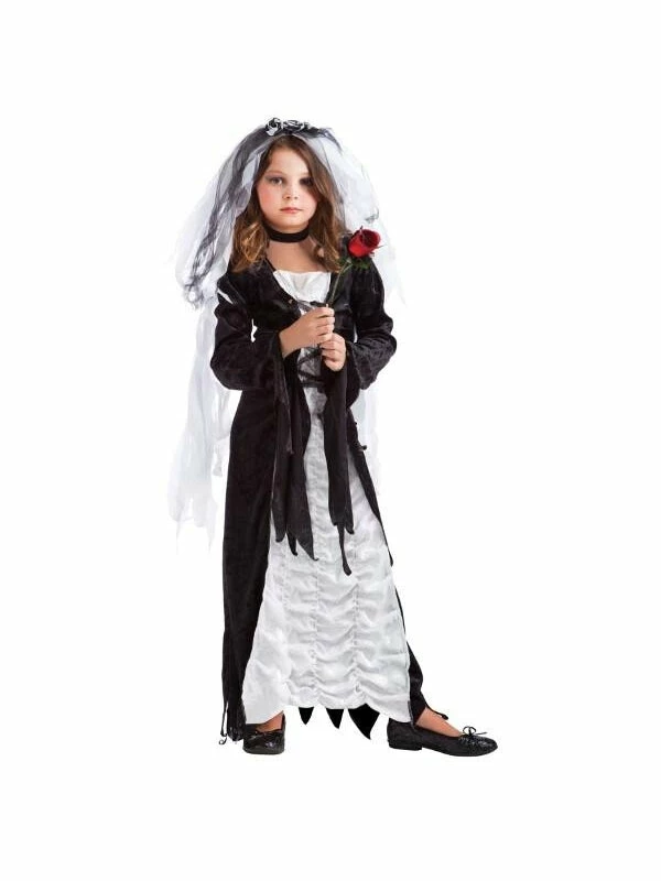 Here comes the bride, all dressed in…black? Add a spooky twist to a classic Halloween favorite with our child’s Bride of Darkness costume. Comes complete with gothic black & white veil, choker, and shoulder tatters to create a truly authentic monster bride look. To complete the ensemble, add a spooky dark make up kit or a bouquet of fake flowers.