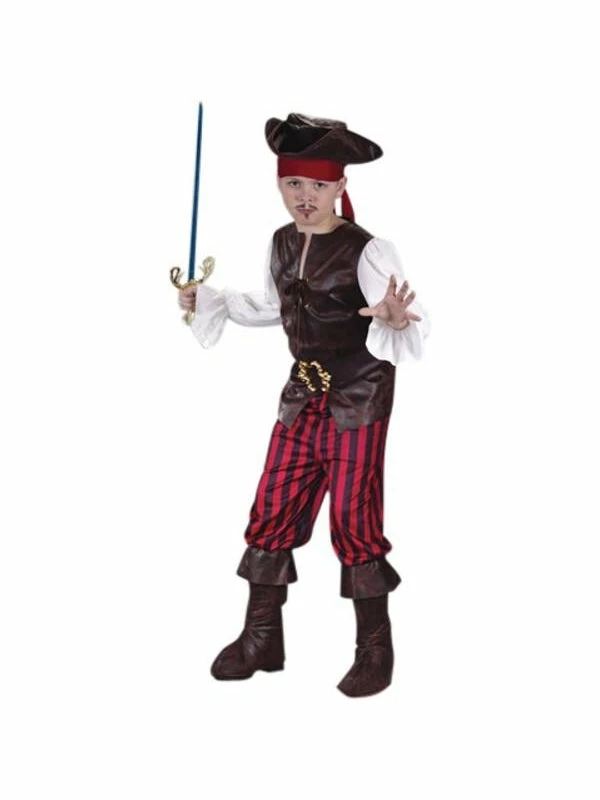 Our kid’s high seas buccaneer outfit is a great children’s pirate costume and it makes a great pirate Halloween costume.