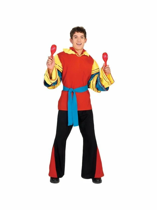 This men’s carnival costume is perfect as a clown outfit, or for an acrobat. Our colorful carnival suit is a great idea for this Halloween. Makes a great group costume idea.
