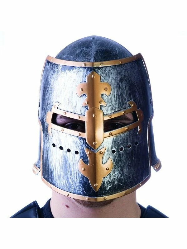 This medieval-looking helmet has the authentic aesthetic to complete any shining knight costume. Made of durable, hard plastic.