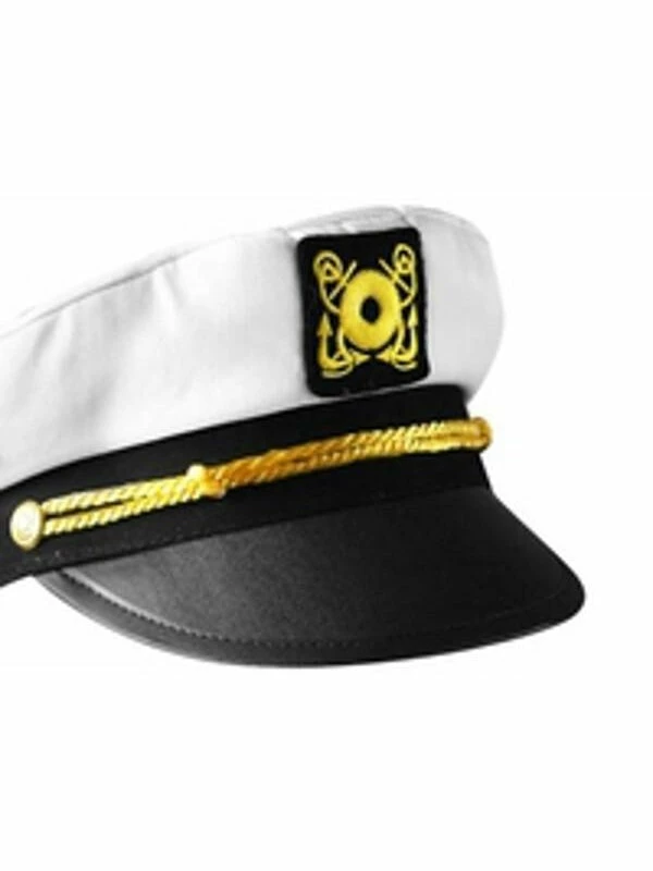 This costume hat is modeled on the classic yacht sailor cap and makes an excellent costume accessory.