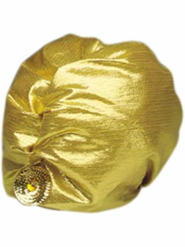 This golden-color turban will complete any Arabian, Indian, or Genie costume.
