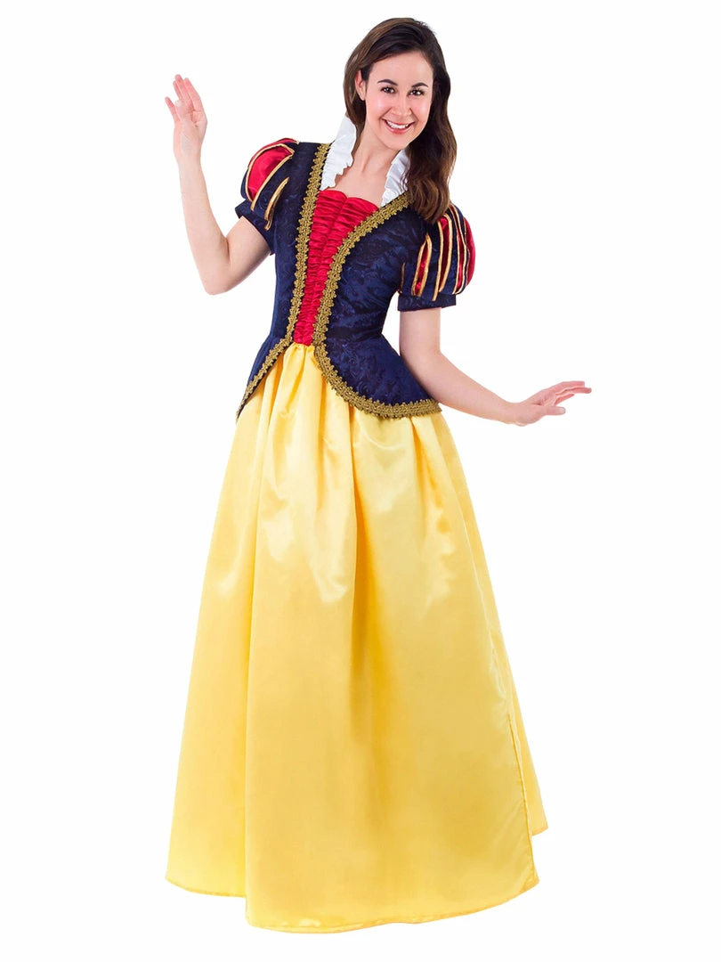 Our adult deluxe Snow White costume features high quality construction that looks a cut above most costumes. Available in three sizes to fit your frame just so. 100% Polyester, Collar: 97% Polyester, 3% Spandex. Machine Washable