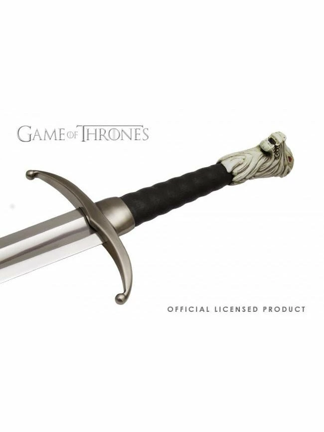 Now you can own this beautifully crafted replica of Jon Snow’s prop from your favorite HBO hit series Game of Thrones. The 35 inch blade is made from polished stainless steel, while the hilt is made with genuine leather. The pommel features an antique metal wolf with exquisite details, and red jeweled eyes.