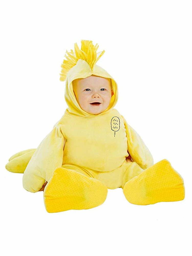 This baby Woodstock costume is based on Snoopy’s long-time friend and companion from the classic Peanuts Gang comics.