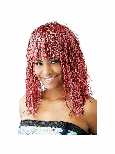 - One red tinsel wig