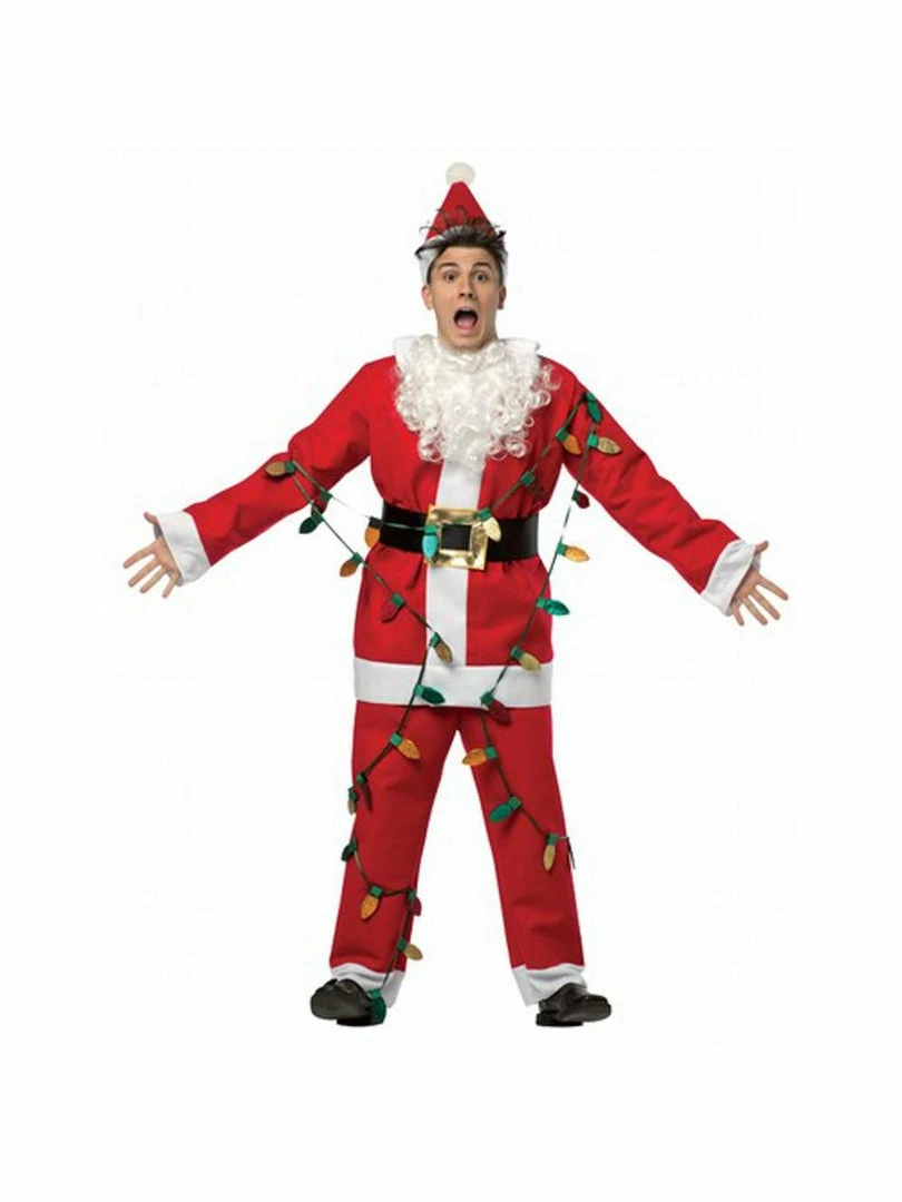 Now you can bring the fun and the humor of the National Lampoons Christmas Vacation to your part with this Light Up Santa Suit. This costume features a Santa jacket with attached lights, matching pants, a black Santa belt, and a Santa hat.Â