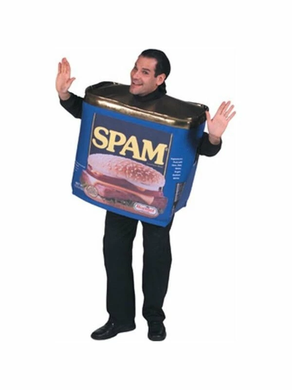 Our spam outfit is a funny practical joke costume idea for anyone looking for a unique Halloween costume.